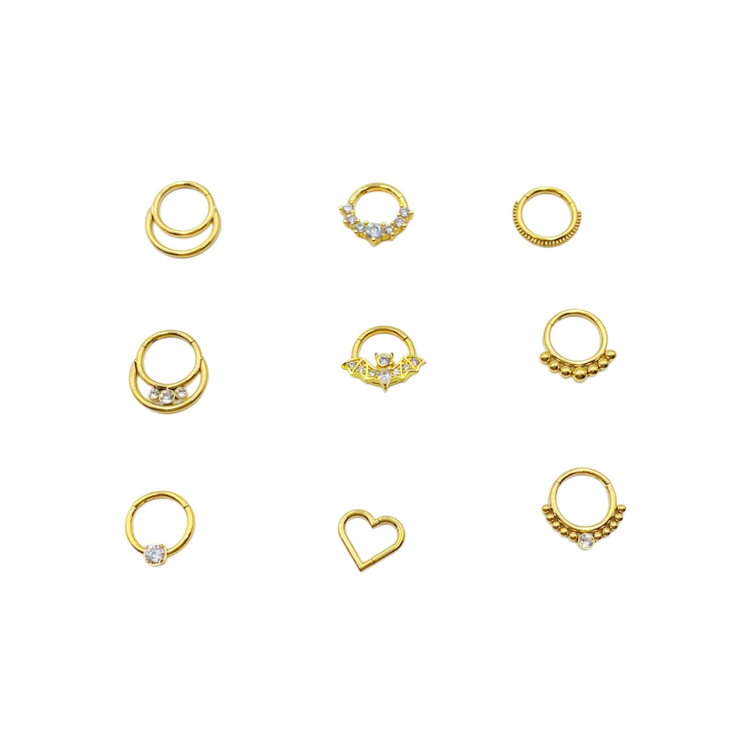 Double Loop, Full Cz, Plain, Double Loop Cz, Bat, Boho Plain, Plain Cz, Heart, Boho Cz