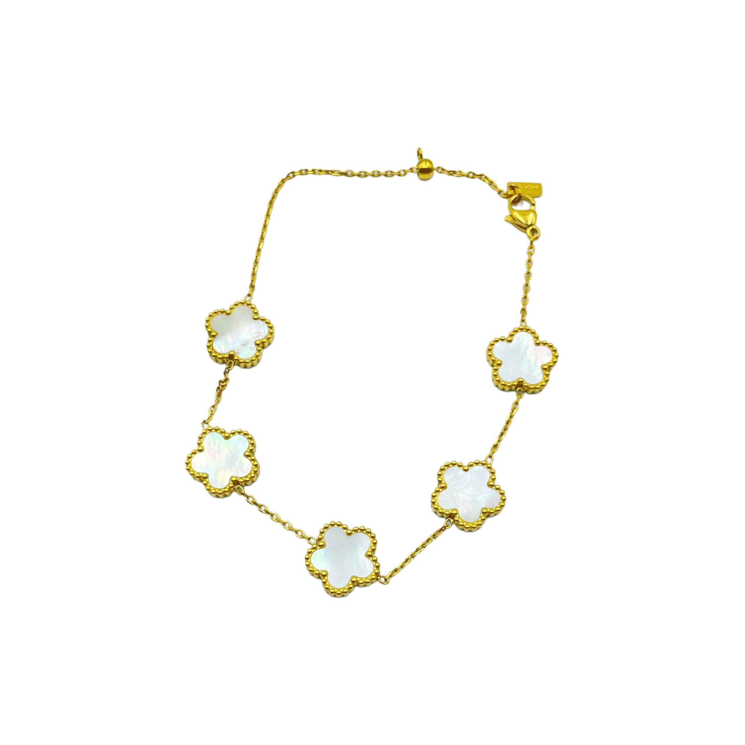 Mother of Pearl Flower Bracelet (Van Cleef Inspired) with 18kt PVD Gold Plating